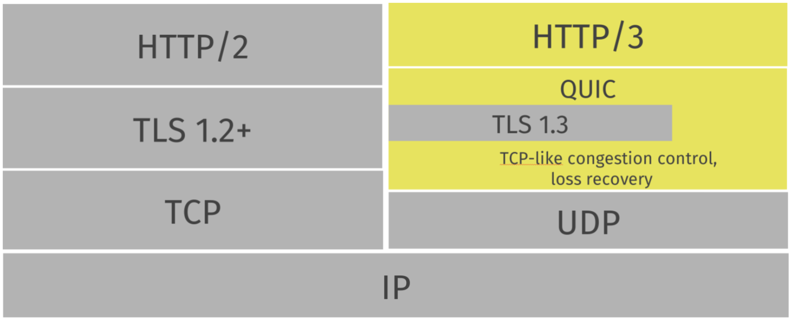 즉, QUIC에 HTTP/2의 TCP, TLS 기능을 그대로 구현했다고 볼 수 있음